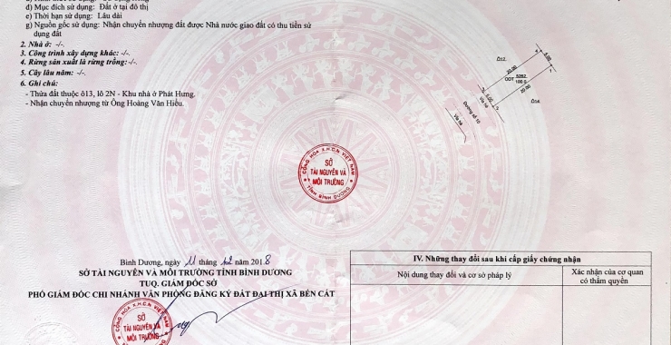 Hiện tại Lô đất 100m2 thuộc khu nhà ở Phát Hưng đã có sổ riêng, thổ cư 100%, mua sang tên nay tại phòng công chứng.